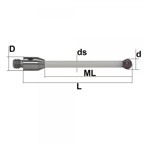 Der Standardtaster Taster M3 aus Keramik mit einer Rubinkugel eignet sich für alle Antastungen. Die Aufnahme in M3 wird aus Stahl gefertigt, in die der Keramikschaft eingeklebt wird. M3 Taster lassen sich über jeweilige Adapter an allen anderen Systemen, M4 – M5, einsetzen.